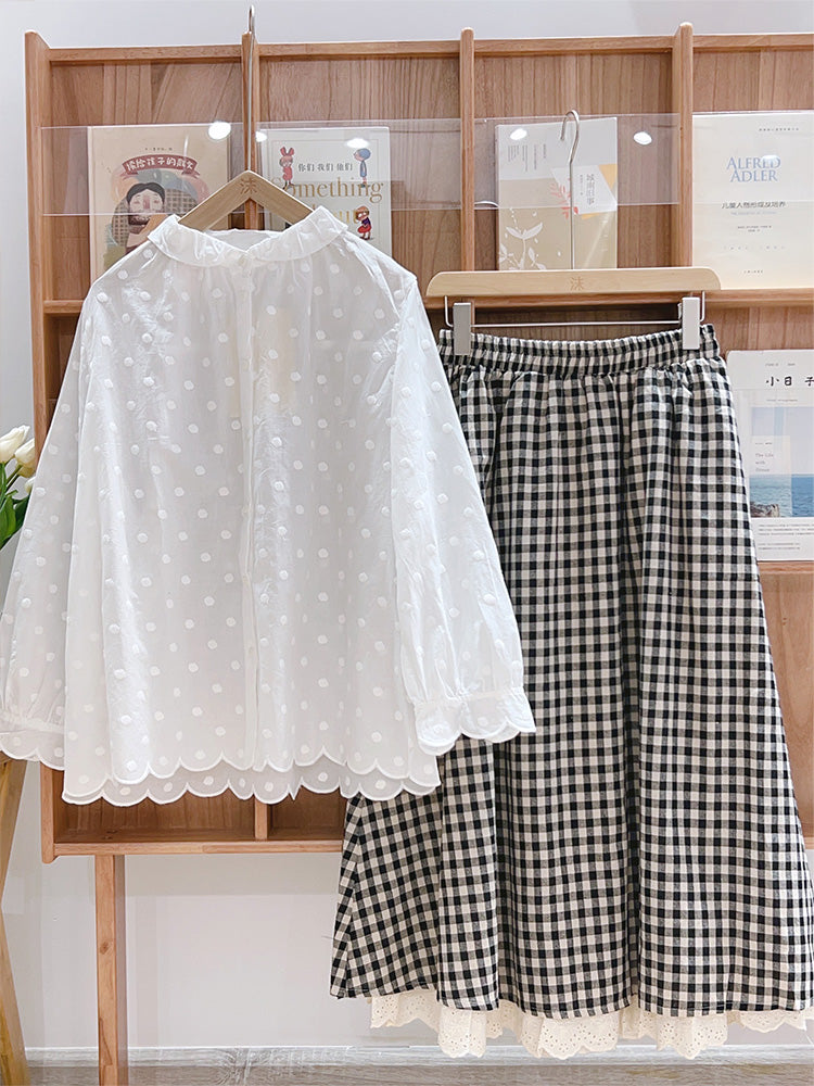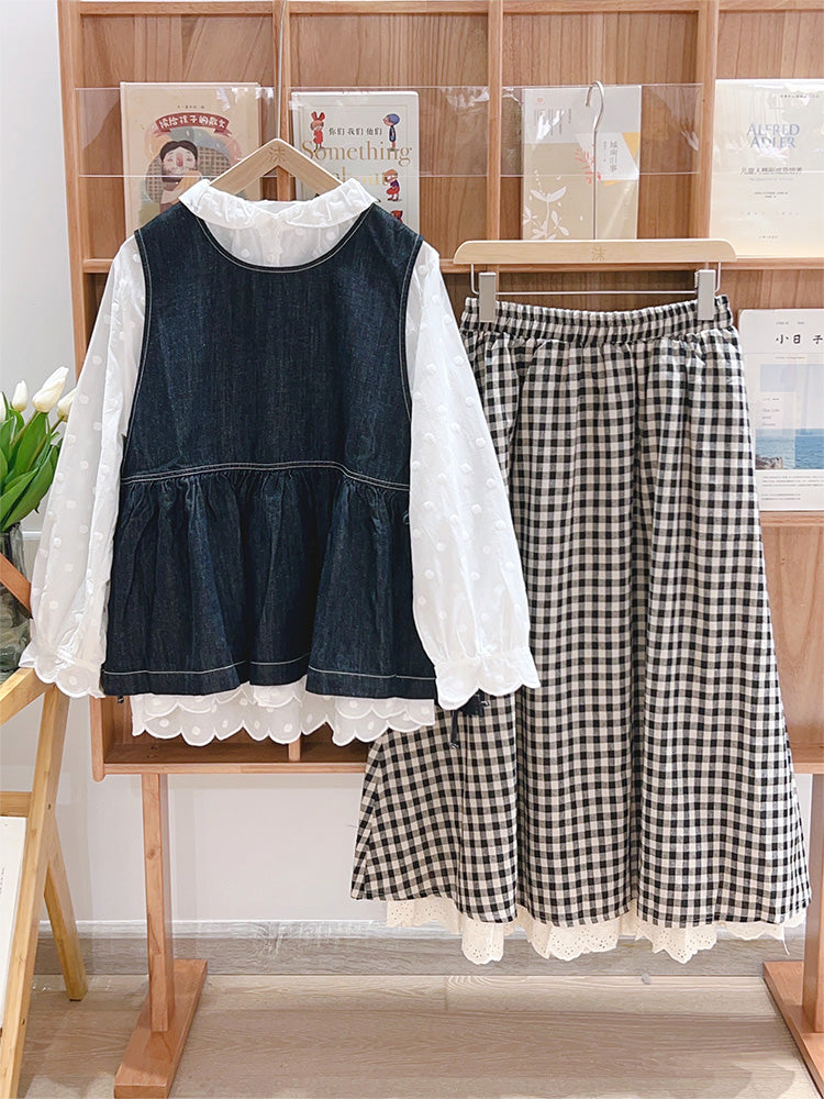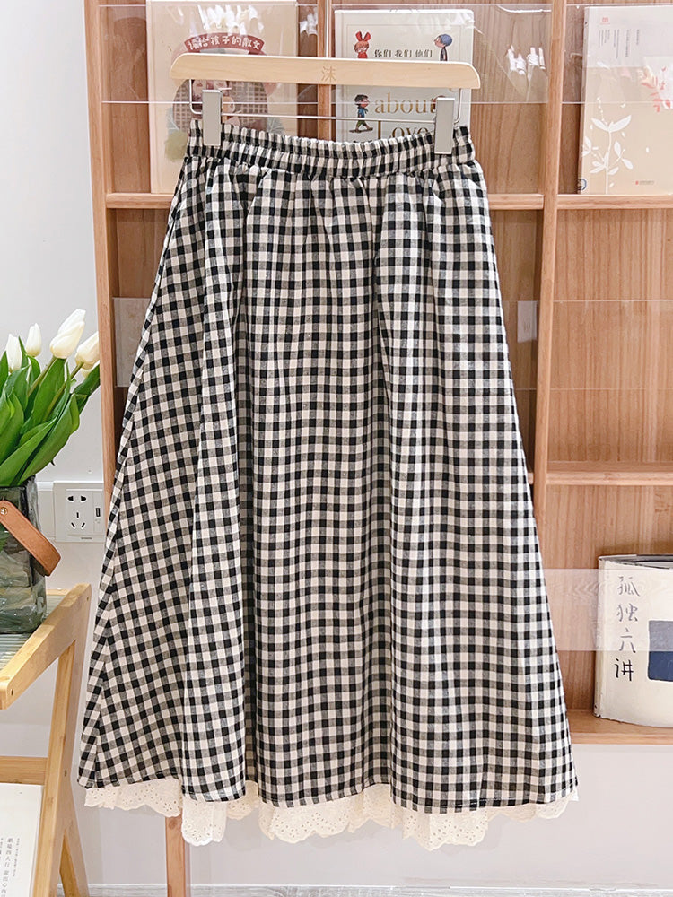 Lace Hem Checkered Skirt
